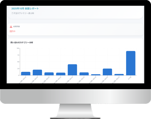 患者様がどのような質問をしているか、AIがどのように回答したかを分析することで、クリニックのサービス向上に役立てることが可能です。
