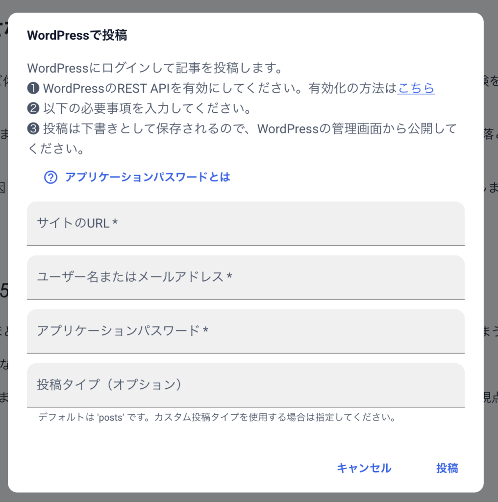 ※こちらに日本語を入力するとエラーが発生して、WordPressに直接投稿できません。